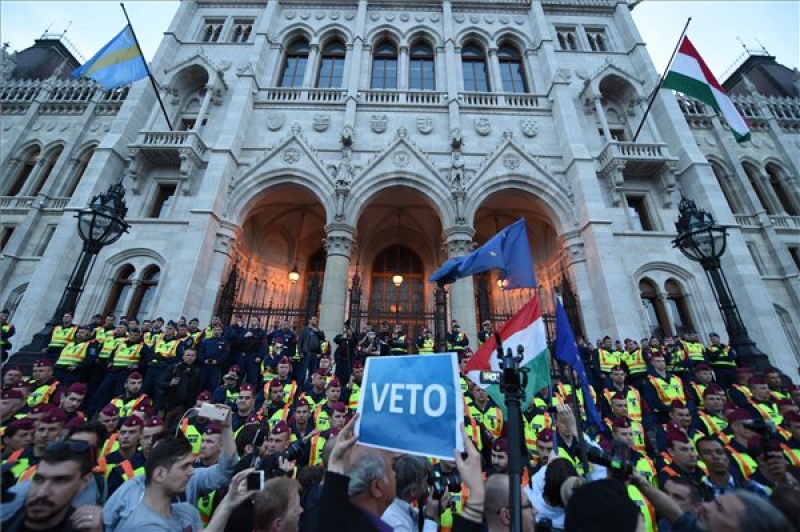 Végül egy demonstráló feljutott a Parlament lépcsőjének tetején lévő egyik oroszlánszobor mellé a két zászlóval, a rendőrök ebben nem akadályozták meg. Ugyanakkor Kunhalmi Ágnes szocialista képviselő megjelent a Parlament egyik ablakában, ahonnan kilógatta az uniós lobogót.