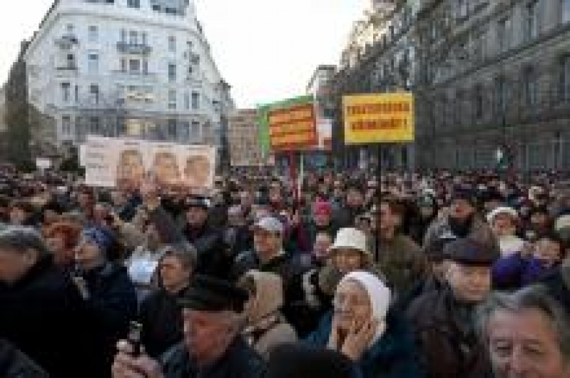 Résztvevők a Klubrádióért rendezett tüntetésen Budapesten, a Batthyány-örökmécses előtt. MTI Fotó: Szigetváry Zsolt