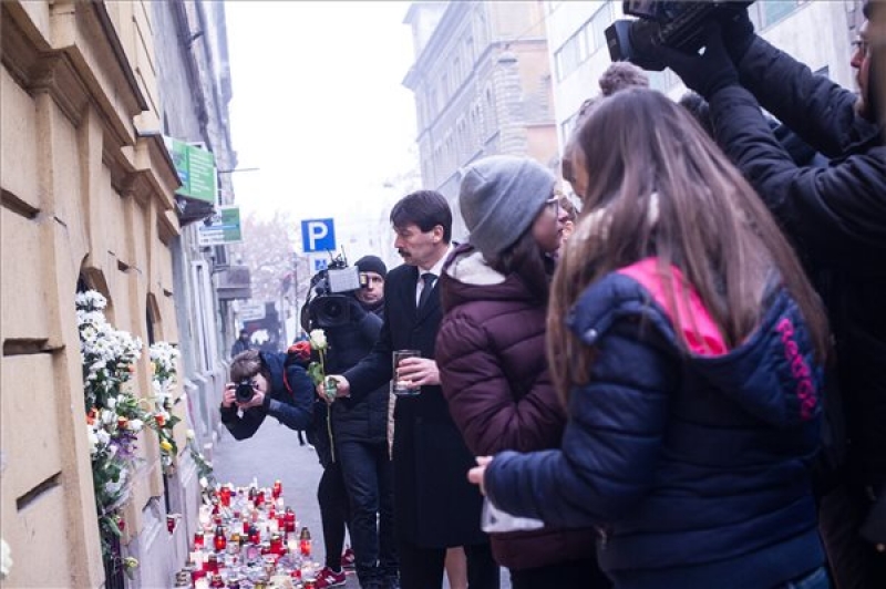 Az Országház előtti megemlékezésen a budapesti Szinyei Merse Pál Gimnázium tanulói és tanárai, valamint a hozzátartozók közül is sokan ott voltak. A közjogi méltóságok a megemlékezés végén személyesen fejezték ki részvétüket nekik.