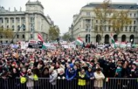 "A nácikkal szemben mindenkivel össze kell fogni, de még a hatalomért sem szabad összefogni a nácikkal" - hangsúlyozta Bajnai Gordon a Parlament előtt rendezett tömegtüntetésen.