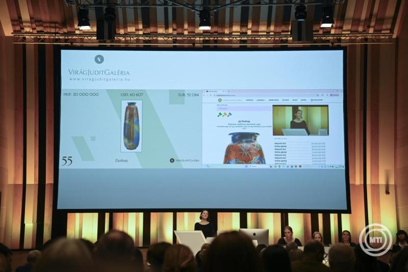 Három porcelán is 20 millió forint feletti áron, köztük egy óriáskaspó 26 millió forintért kelt el a Virág Judit Galéria ötödik Zsolnay-árverésén.A Virág Judit Galéria hétfői aukcióján 71 tételre lehetett licitálni, olyan porcelánokra, amelyek többségéből mindössze egy, vagy limitált számú példány készült - közölték.