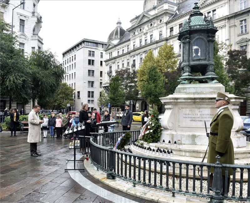 Az aradi vértanúk emléknapján, csütörtök reggel katonai tiszteletadás mellett ünnepélyesen felvonták, majd félárbócra eresztették a nemzeti lobogót az 1848-49-es forradalom és szabadságharc évfordulóján, a Parlament előtti Kossuth Lajos téren.