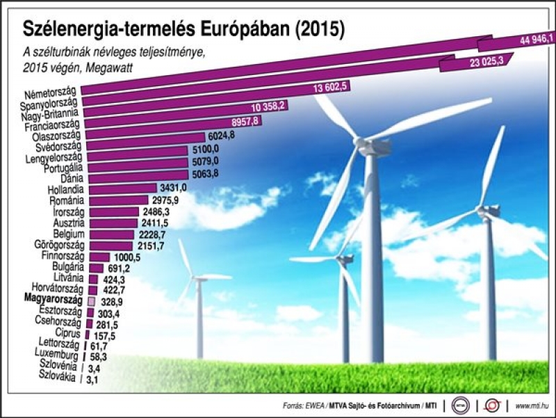 Tavaly Kínában 145 GW, az EU tagállamaiban pedig 142 GW szélerőművi kapacitás állt rendelkezésre, ebből 45 GW Németországban, 23 GW Spanyolországban és 14 GW Nagy-Britanniában.