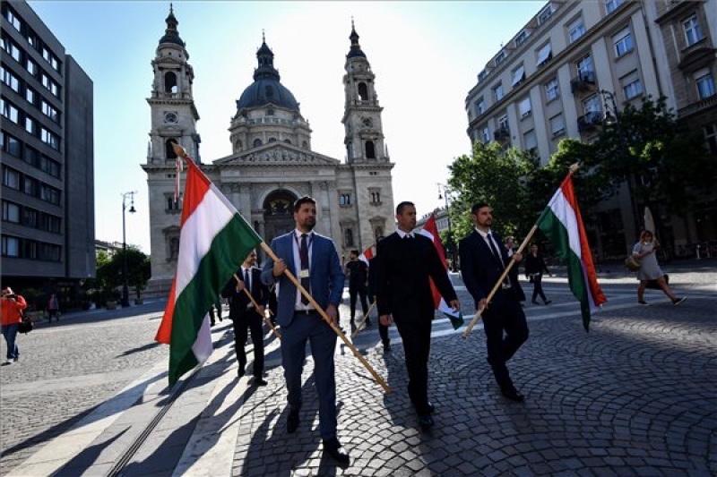 A Jobbik megválasztott képviselői kedd reggel, magyar zászlók kíséretében közösen vonultak be a Parlamentbe, ezt megelőzően pedig misén vettek részt a Szent István-bazilikában.
