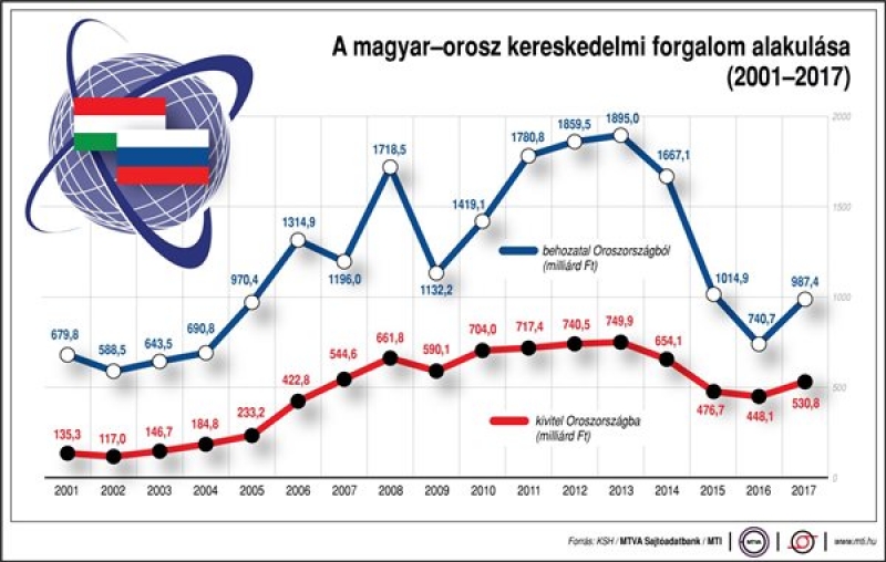 Mielőtt az Európai Unió életbe léptette volna az Oroszországgal szembeni szankcióit, majd az oroszok a saját válaszintézkedéseiket, azelőtt Oroszország volt a második legfontosabb kereskedelmi partnere Magyarországnak, ma már viszont mindössze a 12. - mondta. Hozzátette, hogy a magyar gazdaság szereplői összességében mintegy 7 milliárd dollárnyi exportlehetőséget veszítettek el a kereskedelmi korlátozó intézkedések miatt.