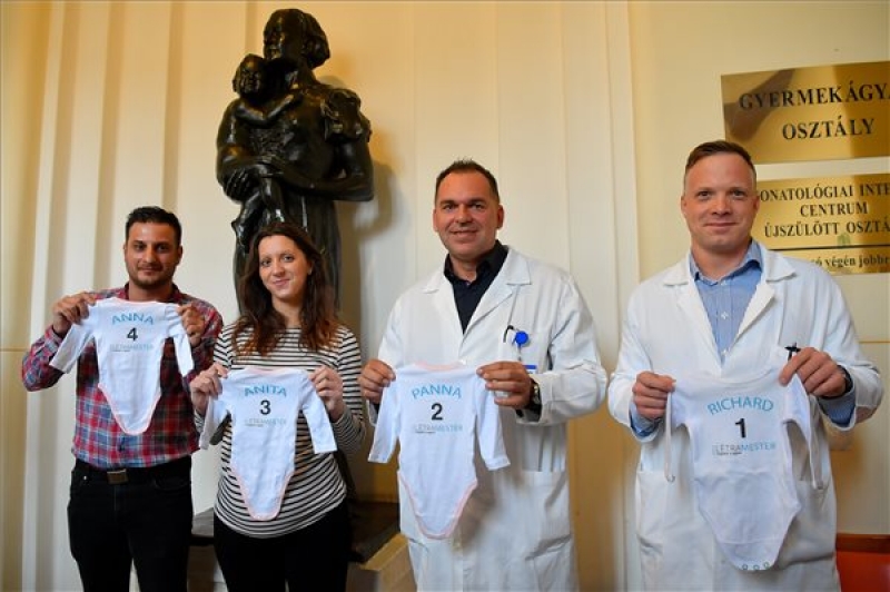 A szülőknek a négyes ikrek az első gyermekeik. A három lány és a kisfiú - Panna, Anita, Anna és Richárd - 1230 és 1750 gramm közötti súllyal született, valamennyien egészségesek.