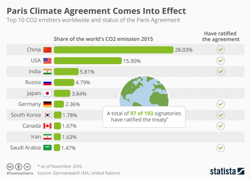 A világ tizenöt, a legtöbb üvegházhatású gázt kibocsátó országában a levegőszennyezés egészségre gyakorolt, pénzben kifejezett káros hatása a bruttó hazai termék (GDP) több mint 4 százalékát teheti ki becslések szerint, miközben a párizsi egyezmény végrehajtásához szükséges intézkedések a globális GDP 1 százalékával egyenlő ráfordításokat kényszerítenék ki.